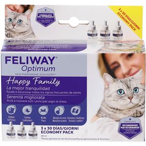 FELIWAY Optimum - Antistress per gatti, complesso di feromoni lenitivi per una serenità rafforzata, confezione economica 3 ricariche (3 x 30 giorni) in Articoli per Veterinaria