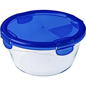 Pyrex Cook & Go Contenitore Tondo in Vetro Borosilicato con Coperchio Ermetico 0,7 L - Diametro 15 cm, Trasparente e Blu