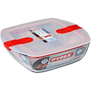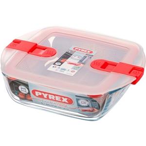 Pyrex Cook & Heat Contenitore Quadrato in Vetro Borosilicato con Coperchio Sfiatavapore - 25x22 cm, Resistente a Temperature da -40°C a 300°C in Tavola e Cucina