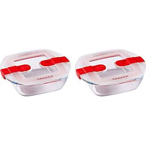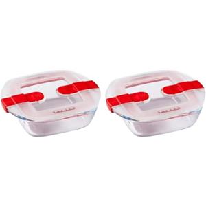 Pyrex Cook & Heat contenitore quadrato per alimenti in vetro borosilicato con coperchio sfiatavapore per il microonde - cuocere in forno, conservare & riscaldare - 14x12cm - (Confezione da 2)