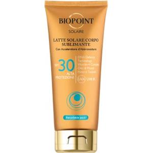 Biopoint Latte Solare Corpo Sublimante SPF 30 - 200 ml con Acceleratore di Abbronzatura, Azione Antiossidante e Idratante