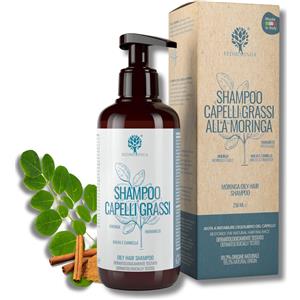 RedMoringa Shampoo BIO 250ml - Seboregolatore per Capelli Grassi con Moringa, Malva e Cannella, 99,5% Naturale