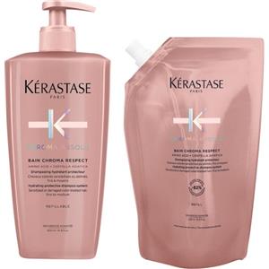 Kérastase Chroma Absolu Bain Chroma Respect - Shampoo protettivo e idratante per capelli colorati, 500 ml con dispenser e ricarica