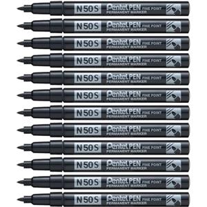 Pentel N50S Marcatore Permanente Slim Nero - Punta Fine 3,18 mm, Fusto in Metallo, Alta Indelebilità, Conf. 12 pz