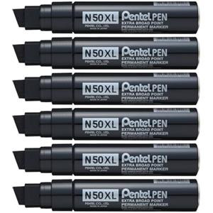 Pentel N50XL Marcatore Permanente Nero con Punta a Scalpello - Confezione da 6 pz, Larghezza Tratto da 2,0 a 17 mm, Fusto in Metallo, Alta Indelebilità