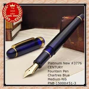 PLATINUM Penna Stilografica #3776 Century Gold Trim Chartres Blue in Oro 14 Carati con Pennino Medio e Confezione Regalo