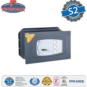 Technomax GD/3 - Cassaforte a muro con chiave e combinazione, 21x34x20cm, Certificazione S2