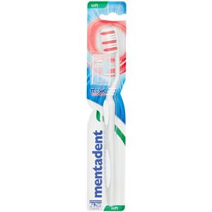 Mentadent Spazzolino Tecnic Soft Delicato con Manico a Tripla Angolazione e Pulisci Lingua