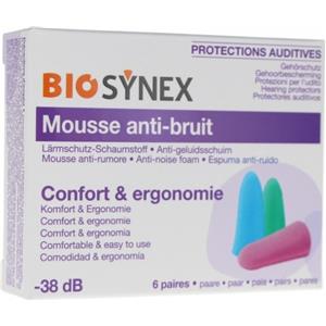 Biosynex Protezione Uditiva Mousse Anatomica - 6 Paia, Antirumore -38 dB