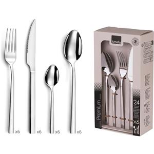 Amefa Caractere Set di 24 Posate in Acciaio Inossidabile con Finitura Lucida, Include Forchette, Coltelli, Cucchiai e Cucchiaini da Caffè