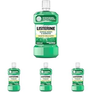 Listerine, Collutorio, Difesa Denti e Gengive, Gusto Delicato, Zero Alcol, Tripla Azione, Denti più Forti, Gengive più Sane, Menta Delicata, 500ml (Confezione da 4)