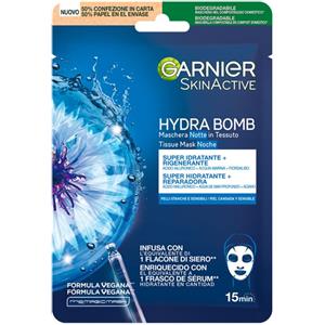 Garnier Skin Active Hydra Bomb - Maschera in Tessuto Notte Idratante e Rigenerante con Acido Ialuronico, Acqua Marina e Fiordaliso per Pelli Stanche e Sensibili, 28 g