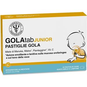 UNIFARCO GOLAtab JUNIOR - Integratore alimentare con miele di Manuka, malva e piantaggine - 20 pastiglie dure da 2,5 g