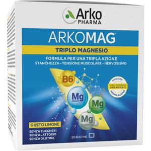 Arkomag Triplo Magnesio - Integratore Alimentare in Bustine per Stanchezza e Nervosismo - 20 Bustine al Gusto Limone