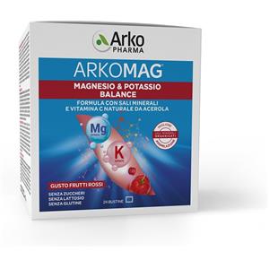 Arkopharma Arkomag Magnesio & Potassio Balance - Integratore per Stanchezza e Recupero Muscolare, 24 Bustine Gusto Frutti Rossi
