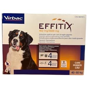 Virbac Effitix Spot-On Antiparassitario per Cani 40-60 Kg - 4 Pipette da 6,6 ml con Fipronil e Permetrina in Articoli per Veterinaria