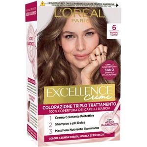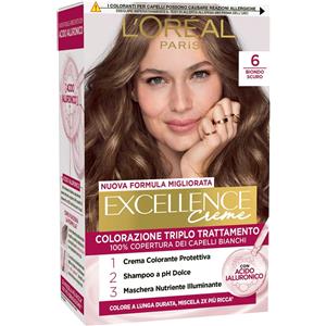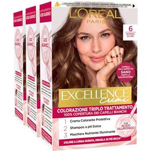 L'Oreal Paris L'Oréal Paris Tinta Permanente Excellence Creme 6 Biondo Scuro Colorazione Triplo Trattamento Copre 100% dei Capelli Bianchi Lunga Durata con Acido Ialuronico - 3 Tinte