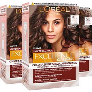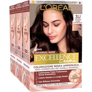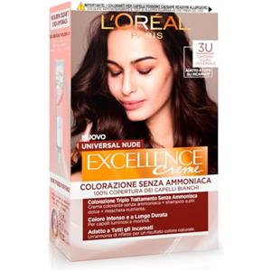 L'Oreal Paris L'Oréal Paris Colorazione Permanente Excellence Universal Nude, Senza Ammoniaca, Riflesso Universale, Colore Intenso a Lunga Tenuta, Castano Scuro 3u