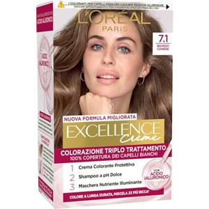 L'Oreal Paris L'Oréal Paris Colorazione Triplo Trattamento Excellence, Con Acido Ialuronico, 100% Copertura Capelli Bianchi, Per Capelli Più Idratati, Biondo Cenere (7,1)