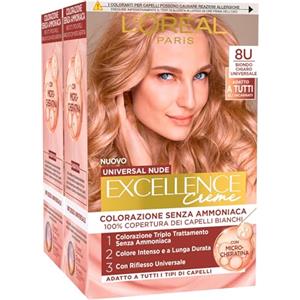 L'Oreal Paris L'Oréal Paris Tinta Permanente Excellence Creme Universal Nude 8U Biondo Chiaro Universale Copre 100% dei Capelli Bianchi Lunga Durata con Micro-Cheratina - 2 Tinte