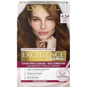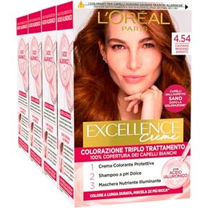 L'Oreal Paris L'Oréal Paris Tinta Permanente Excellence Creme 4.54 Castano Mogano Ramato Colorazione Triplo Trattamento Lunga Durata con Acido Ialuronico Copre 100% dei Capelli Bianchi - 4 Tinte