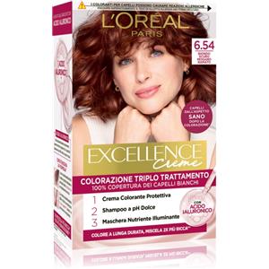 L'Oreal Paris L'Oréal Paris Tinta Permanente Excellence Creme 6.54 Biondo Scuro Mogano Ramato Colorazione Triplo Trattamento con Acido Ialuronico Copre 100% dei Capelli Bianchi - 3 Tinte