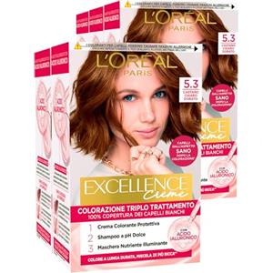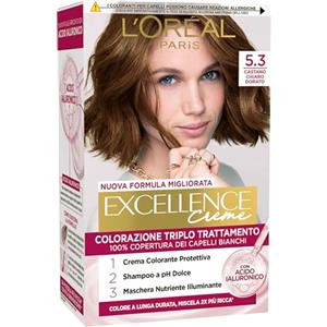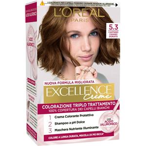 L'Oreal Paris L'Oréal Paris Tinta Permanente Excellence Creme 5.3 Castano Chiaro Dorato Colorazione Triplo Trattamento Lunga Durata con Acido Ialuronico Copre 100% dei Capelli Bianchi - 5 Tinte