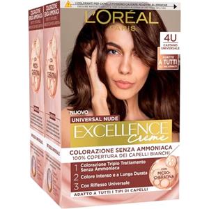 L'Oreal Paris L'Oréal Paris Tinta Permanente Excellence Creme Universal Nude 4U Castano Universale Colorazione Triplo Trattamento Copre 100% dei Capelli Bianchi Senza Ammoniaca - 2 Tinte