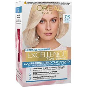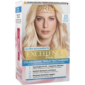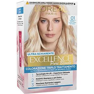 L'Oreal Paris L'Oréal Paris Tinta Permanente Excellence Pure Blonde 01 Biondo Ultra Chiaro Naturale Colorazione Triplo Trattamento Copre 100% dei Capelli Bianchi Lunga Durata e Ultra-Schiarente - 3 Tinte