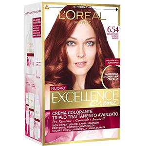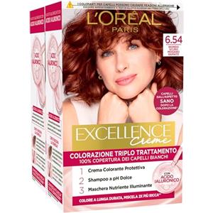 L'Oreal Paris L'Oréal Paris Tinta Permanente Excellence Creme 6.54 Biondo Scuro Mogano Ramato Colorazione Triplo Trattamento con Acido Ialuronico Copre 100% dei Capelli Bianchi - 2 Tinte