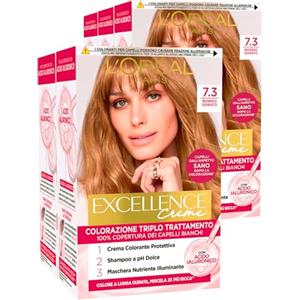 L'Oreal Paris L'Oréal Paris Tinta Permanente Excellence Creme 7.3 Biondo Dorato Colorazione Triplo Trattamento Lunga Durata con Acido Ialuronico Copre 100% dei Capelli Bianchi - 5 Tinte