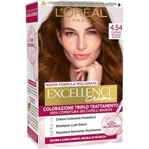 L'Oreal Paris L'Oréal Paris Colorazione Triplo Trattamento Excellence, Con Acido Ialuronico, 100% Copertura Capelli Bianchi, Per Capelli Più Idratati, Castano Mogano Ramato (4,54)