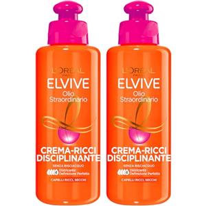 L'Oreal Paris L'Oréal Paris Elvive Olio Straordinario Crema Ricci Disciplinante Senza Risciacquo per Capelli Ricci e Secchi ad Azione Nutriente Anti-Crespo Anti Umidità 48h con Texture Cremosa - 2 Flaconi da 200ml