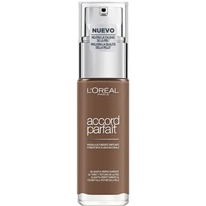 L'Oreal Paris L'Oréal Paris Fondotinta Liquido, Incarnato Uniforme e Illuminato, Finish Naturale, Per Tutti i Tipi di Pelle, Formula con Acido Ialuronico, Accord Parfait, Tonalità: 8R/C Nut Brown, 30 ml in Make-up