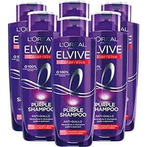 L'Oreal Paris 6x L'Oréal Paris Elvive Color Vive Purple Shampoo Anti Giallo per Capelli Biondi Decolorati e Grigi Neutralizza Sfumature Gialle e Arancioni - 6 Shampoo da 200ml ognuno