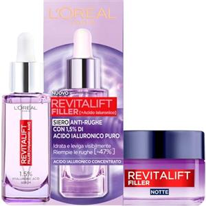 L'Oreal Paris L'Oréal Paris Siero Viso Revitalift Filler Azione Rimpolpante + Crema Viso Trattamento Anti-Rughe Rivolumizzante Notte - 2 Trattamenti con Acido Ialuronico