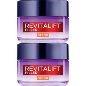L'Oreal Paris L'Oréal Paris Revitalift Filler Crema Giorno Trattamento Rivolumizzante Anti-Rughe Viso Protezione SPF 50 con Acido Ialuronico di Lunga Durata - 2 Barattoli da 50ml