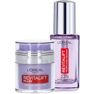 L'Oreal Paris L'Oréal Paris Revitalift Filler Crema-Gel Viso Rimpolpante Anti-Rughe Idratante con Acido Ialuronico 50ml + Siero Contorno Occhi Rinfrescante e Levigante con Caffeina Energizzante contro Occhiaie 20ml