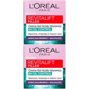 L'Oreal Paris L'Oréal Paris Revitalift Filler Crema-Gel Opacizzante Rimpolpante 8H Oil Control Acido Ialuronico e Acido Salicilico Tonificante Idratante Riduce i Pori per Pelli Miste e Grasse - 2 Barattoli da 50ml