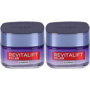 L'Oréal Paris Crema Viso Giorno Revitalift Filler, Azione Antirughe Rivolumizzante con Acido Ialuronico Concentrato, 50 ml 2x50