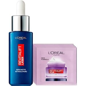 L'Oreal Paris L'Oréal Paris Revitalift Laser Siero Notte Riduce le Rughe Profonde con Retinolo Puro e Acido Ialuronico 30ml + Revitalift Filler Crema Giorno Bundle Routine - Set da 5