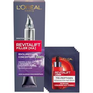 L'Oreal Paris L'Oréal Paris Revitalift Filler [HA] Crema Contorno Occhi Concentrata Rivolumizzante con Acido Ialuronico 15ml + Revitalift Laser Siero Tri-Peptidi Anti-Età Bundle Routine - Set da 6