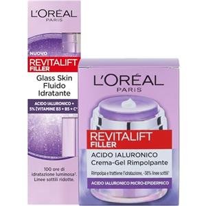 L'Oreal Paris L'Oréal Paris Revitalift Filler Glass Skin Fluido Viso Idratante Illuminante Rimpolpante e Antirughe 50ml + Revitalift Filler Crema-Gel Rimpolpante Texture Leggera con Acido Ialuronico 50ml - Set da 2