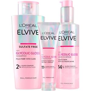 L'Oreal Paris L'Oréal Paris Elvive Glycolic Gloss Shampoo da 200ml + Balsamo da 150ml + Siero Senza Risciacquo da 150ml per Capelli Spenti e Porosi Lucentezza Intensa Lunga Durata - Set da 3