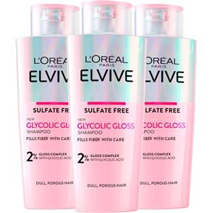L'Oréal Paris Elvive Glycolic Gloss Shampoo - 3 flaconi da 200 ml per Capelli Spenti e Porosi con Acido Glicolico
