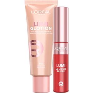 L'Oreal Paris L'Oréal Paris Illuminante Lumi Glotion 902 Light Glow per Viso Corpo 40ml + Blush Lumi Le Liquid 635 Glowy Worth It Medium Ultra-Leggero Modulabile Lunga Tenuta - Set da 2