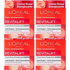 L'Oreal Paris L'Oréal Paris Revitalift Crema Viso Rossa Energizzante Giorno Azione Profonda Anti-Rughe Formula con Pro-Retinolo e Ginseng Rosso - 4 Barattoli da 50ml
