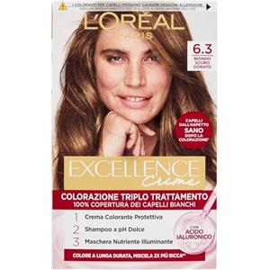 L'Oréal Paris Excellence Crema Colorazione Triplo Trattamento Biondo Scuro Dorato 6.3 - Copertura 100% Capelli Bianchi, Nutriente e Protettivo