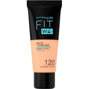 Maybelline Fit Me! Matte Poreless Fondotinta 30 ml - Opacizzante per pelli normali a grasse, tonalità 120 Classic Ivory