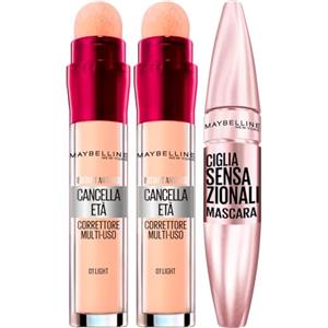 Maybelline New York Il Cancella Età Correttore Liquido Multiuso Applicatore a Spugnetta Colore 01 Light + Ciglia Sensazionali Mascara Volumizzante Colore Intense Black Effetto Ventaglio Senza Grumi